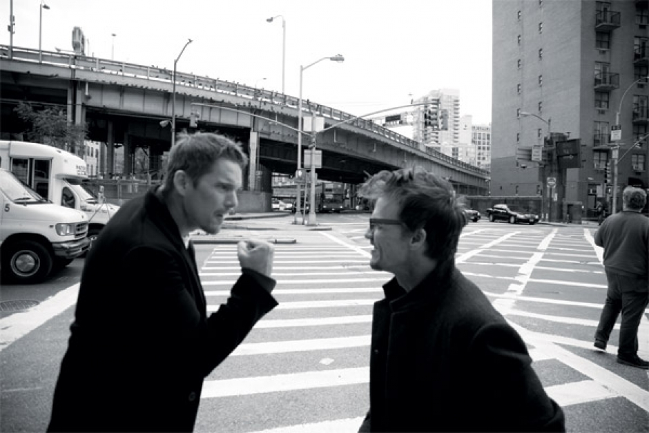 It’s difficult for all sorts of men. Hawke points out that our presidential roll call contains a gamut of personalities. “I watch George Bush at the Texas Rangers games, in a stadium built with taxpayers’ money and then sold as a private entity,” (a fact that infuriated Hawke’s grandfather, who was once in the Texas State Legislature). “Then I see Jimmy Carter on 60 Minutes, and I know he’s been hassled for his choices in office, but if you look at the quality of his character and how he’s applied himself in his post-presidential life, he’s a fascinating human being.” So what’s the answer? What kind of man, or woman, are we looking for to see the world for its individuality and not as a whitewashed mass of humanity? Hawke’s thoughts move too fast for his words. “Does leadership invariably— Can you not be—” and then he finds true icons of effective, benevolent political power. “How did Nelson Mandela do it? How did Eleanor Roosevelt, Mahatma Gandhi, lead large amounts of people and see them as people?” His empathy for all these characters brings up several important questions that may mediate our anger about how our political leaders, both the good and the bad, run the country. “Would you want to handle the Afghan war? Could you begin to try to stop poverty? As an actor, you don’t have to solve these problems; you just ask a lot of questions and provoke thought.” Actors, Hawke says, have the full-time job of inciting thought, just like the couple of guests you invite to your dinner party for their uncanny ability to spark interesting conversation.