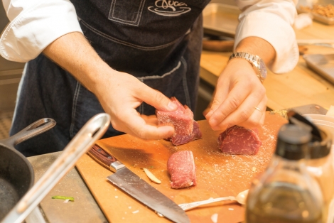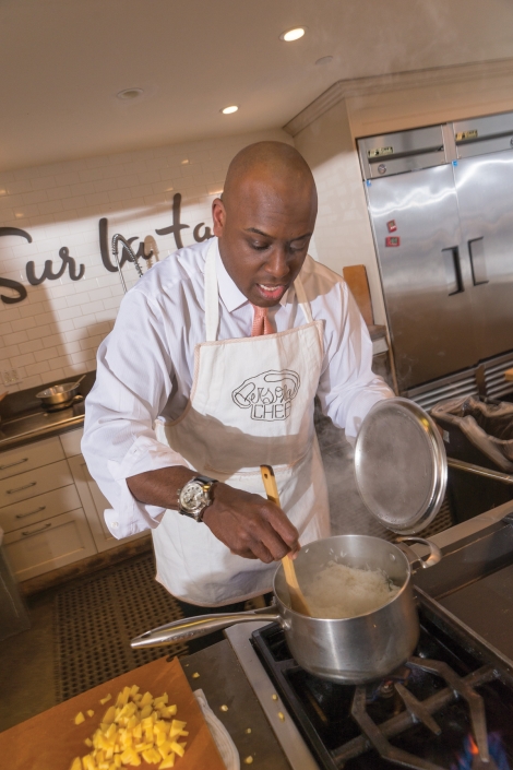 They chose beef, garlic, corn, rice, mango, and raspberries to be their staple components, and made: a curry-cauliflower puree with roasted cauliflower and toasted walnuts; a pan-seared filet mignon and jasmine rice with mango, jalapeno, ginger, and corn in a raspberry, red wine sauce; and for desert some mulled wine poached pears, Luca says he has memories in the kitchen with his mother, but really got his “taste” for food from working in restaurants as a server. “After many years of bringing dishes to the tables, it was time to follow my passion, putting food to put on those plates.”
