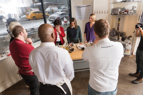 Alison and Joel were the other team competing alongside Kori and Luca, but their tolerance for heat in the kitchen and grace under pressure was admirable. Their staple requests consisted of shrimp, leeks, garlic, beans, blackberries, and melon, which came to create: an Israeli “street” salad with pickled dates and yogurt, a shrimp tajin with chermoula, and for desert some fresh fruit with zabaione and thyme. Their choice of culturally rich dishes was inspiring, pleasing, and good for the senses. We caught up with Joel and asked what sparked his interest in cooking, and got the ultimate true answer—to impress a girl. After this experience, he realized that cooking really just made people happy and proceeded to fall in love with doing it.
